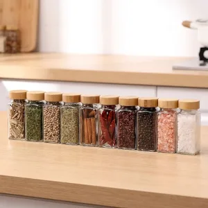 Sada 10 skleněných kořenek s bambusovým víčkem
