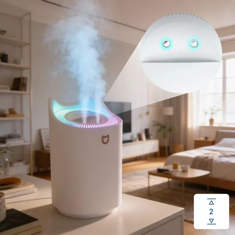 Náš zvlhčovač má dvě trysky, které umožňují pokrytí větších ploch. Vlhčí prostředí může pomoci předcházet suché pokožce a ucpaným dutinám.
