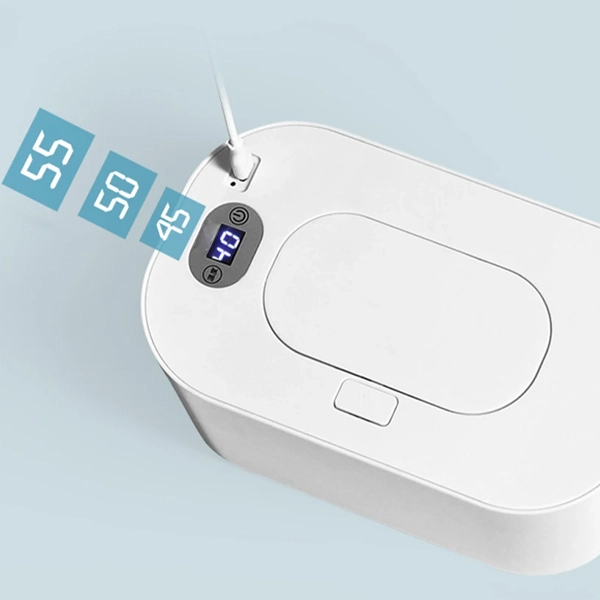 Náš ohřívač má jednoduchý design bez složitých nastavení. Stačí vložit krabičku s ubrousky dovnitř a můžete začít.