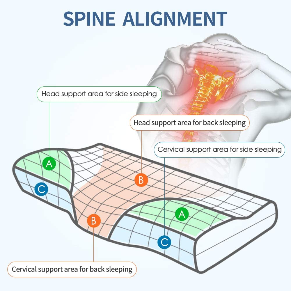 ✔️ BOJUJE PROTI BOLESTEM KRKU, RAMEN A ZAD — Následuje přirozenou křivku vaší hlavy a krku, aby byly správně zarovnány s páteří. Pomáhá snižovat chronické bolesti krku a bolesti svalů. Konturovaný tvar ulevuje od nepohodlí v ramenou a zádech a umožňuje vám během spánku obnovit vitalitu.