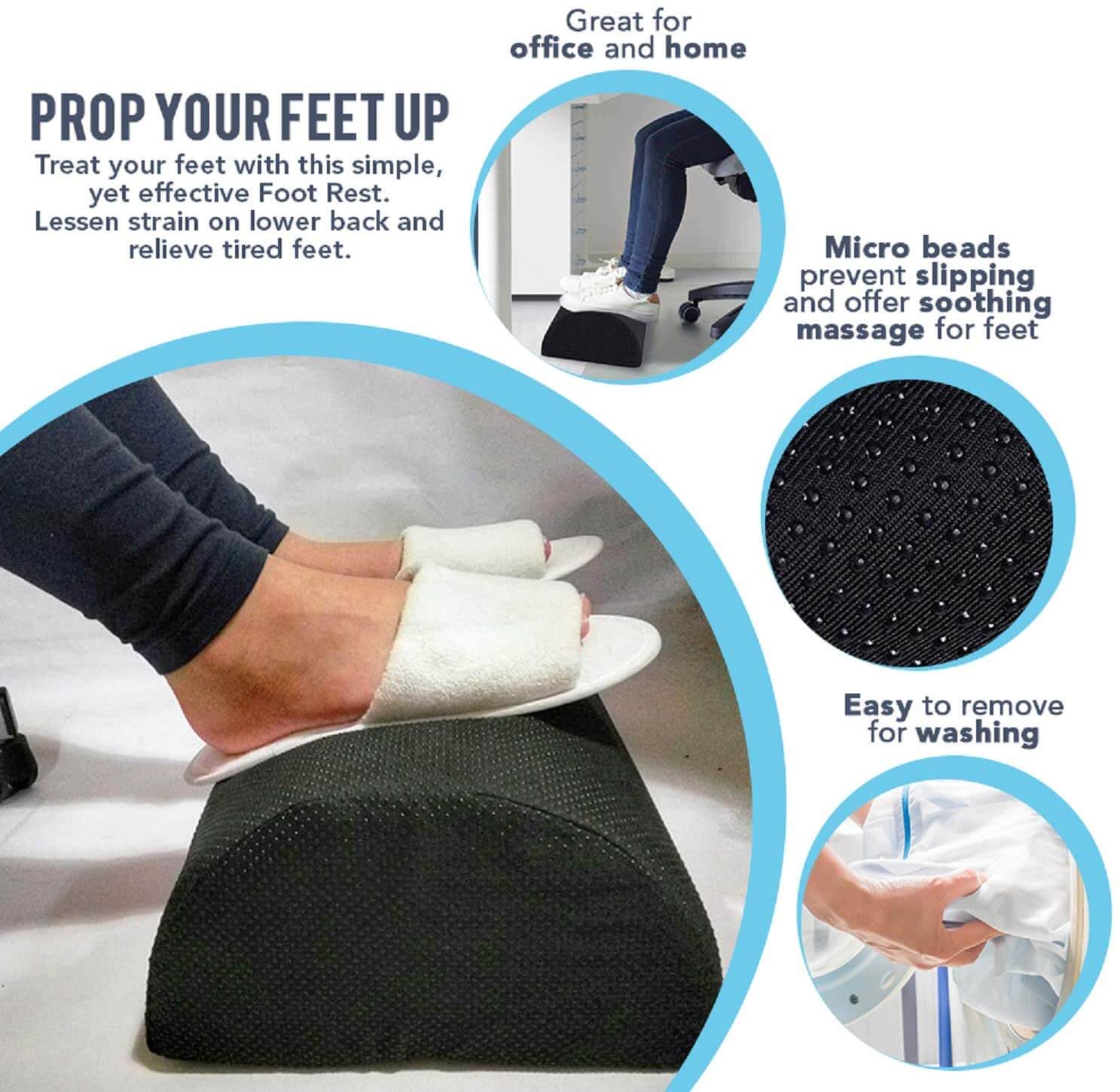 Pokud sedíte více než osm hodin denně, tento polštářek na opření nohou je právě pro vás! Snižuje tlak na nohy, dolní část zad a pas, otoky kotníků, narovnává tělo a podporuje krevní oběh. Polštářek zastavuje bolest a vznik křečových žil. Také zabraňuje tvorbě krevních sraženin, které mohou vést k hluboké žilní trombóze.