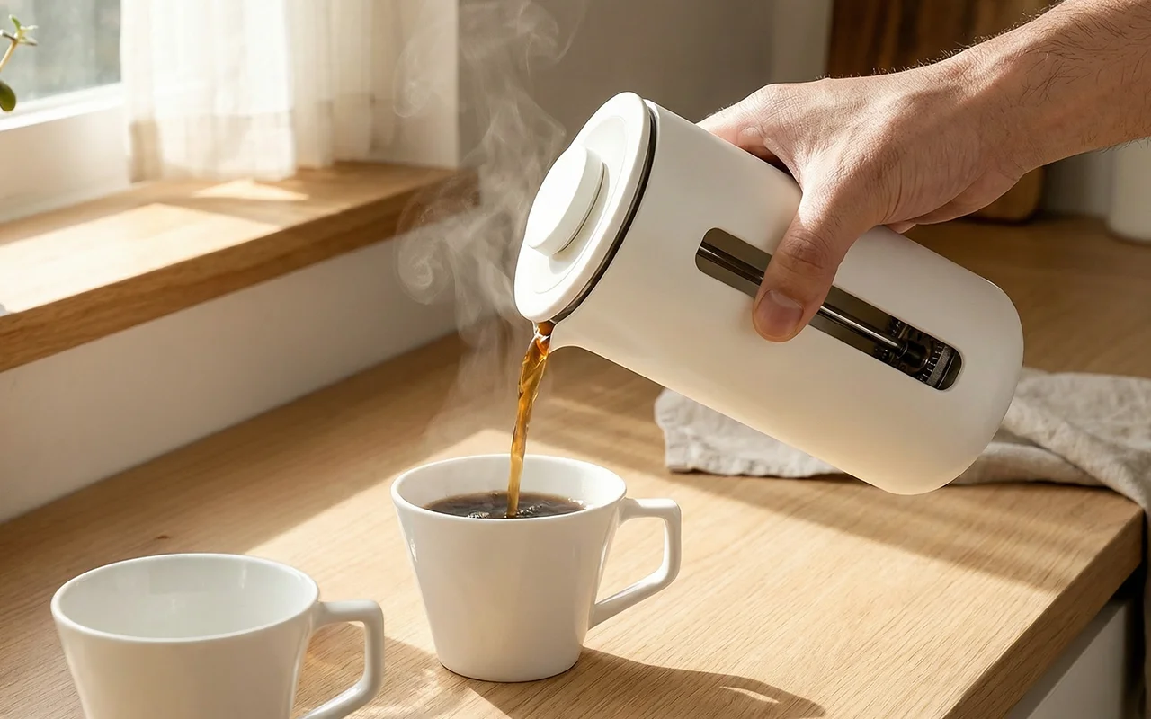 Nygex French promění obyčejná zrna v hluboce uspokojivá rána. Elegantní linie se hodí do upravených kuchyní a okamžitě zapůsobí na návštěvy z rodiny. Tepelně odolné sklo chrání ruce a zajišťuje bezpečnější každodenní nalévání. Zakulacené dno zůstává stabilní i po ťuknutí a předchází stresujícím nehodám s rozlitím.