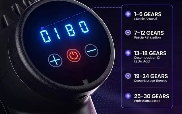 Perkusní masážní přístroj Nygex nabízí nastavitelné režimy. To vám umožní vybrat si ošetření, které nejlépe vyhovuje vaší pohodě.