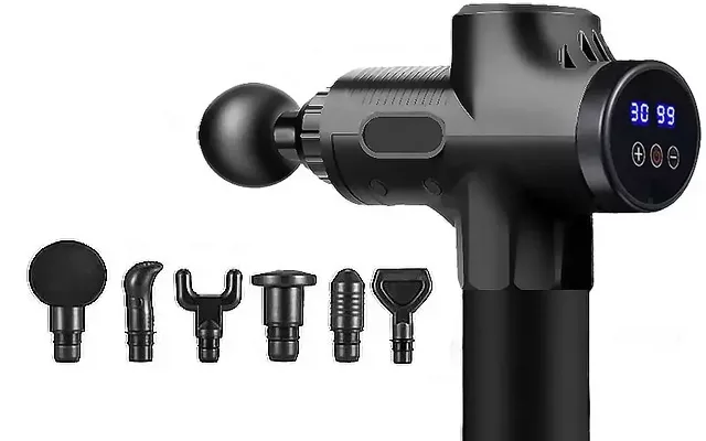 Tato přenosná masážní pistole je vybavena několika nástavci. Každý z nich je navržen tak, aby cíleně působil na různé svalové skupiny.