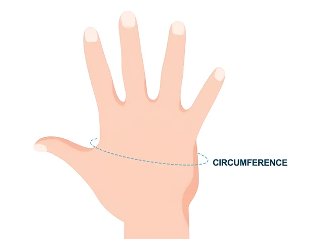 1. Omotejte si krejčovský metr kolem dlaně těsně pod klouby.