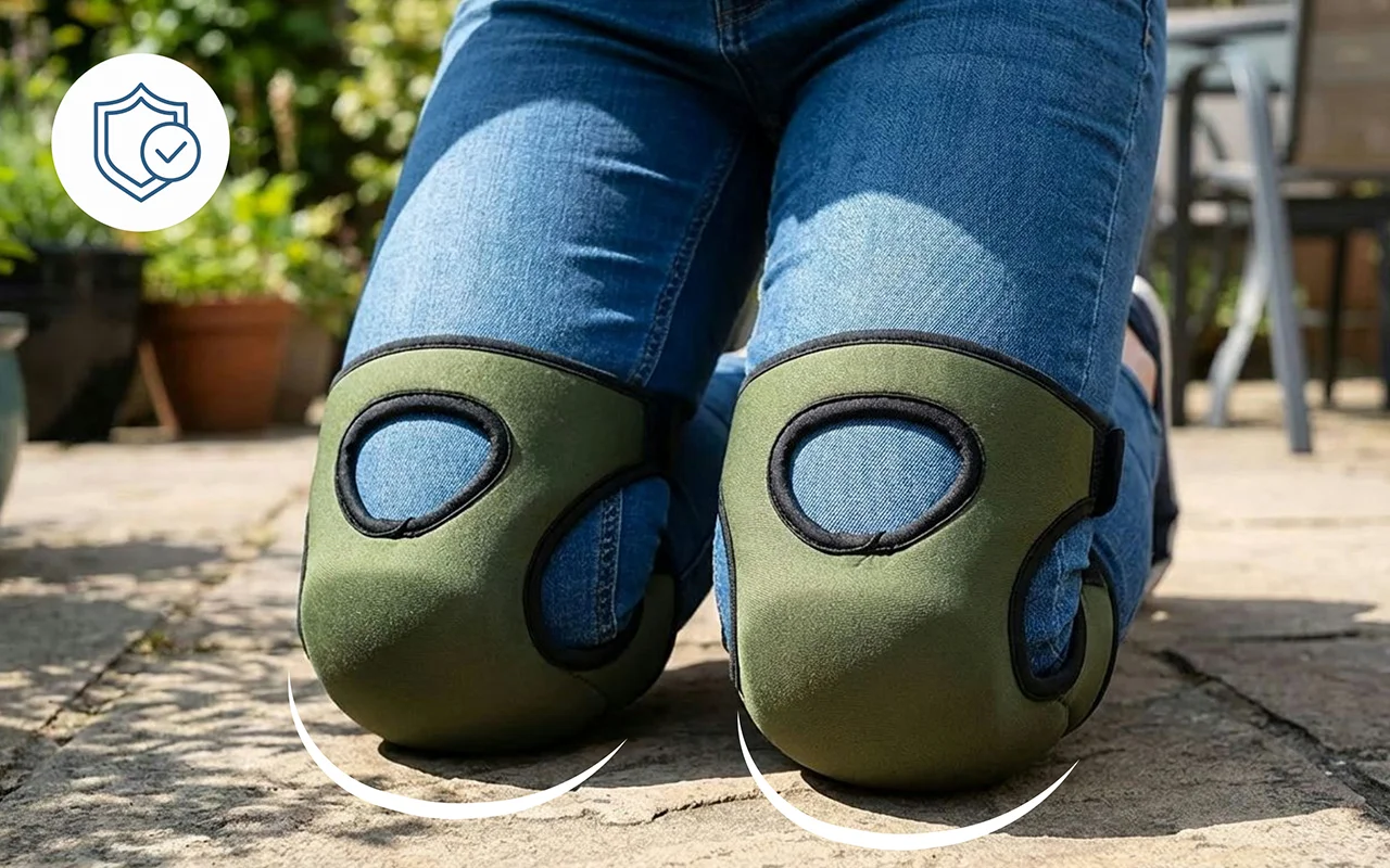 Husté pěnové polstrování rovnoměrně rozkládá váhu na citlivých místech. Kolena zůstávají uvolněná i po dlouhých seancích při čištění venkovních teras.