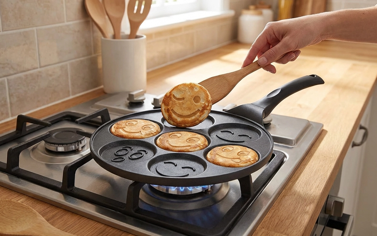 Pánev na mini palačinky s usměvavými obličeji