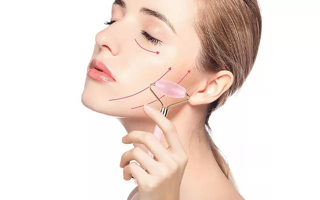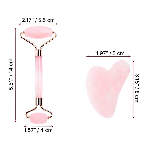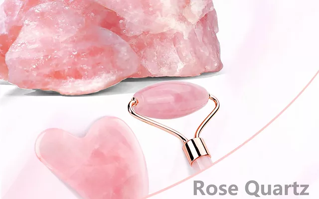 Masážní váleček a Gua Sha z růženínu pro lifting obličeje