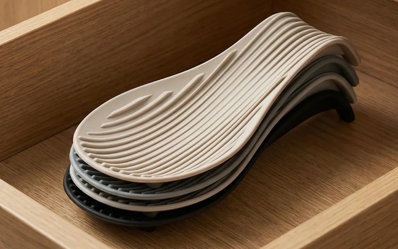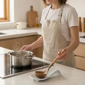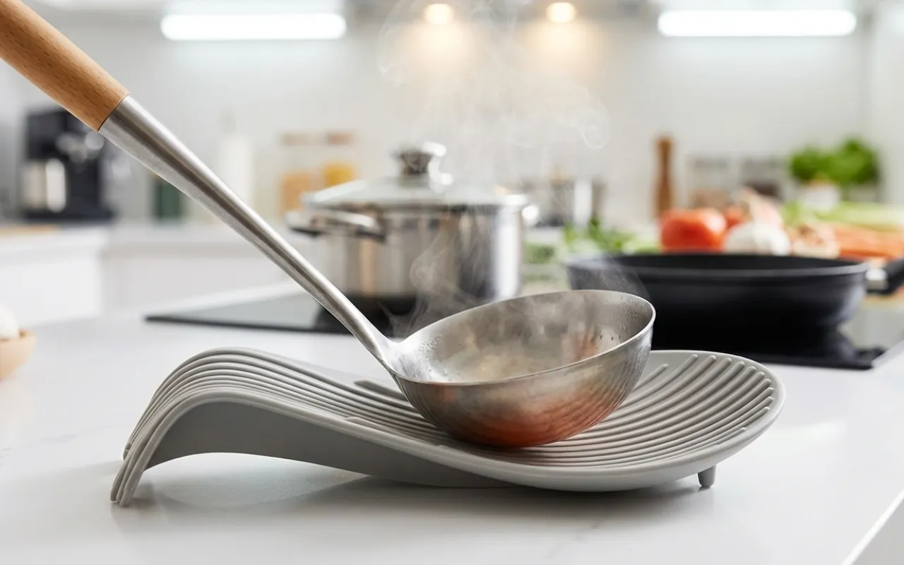Zaneprázdnění kuchaři dnes nesnášejí lepkavé kroužky pod odkapávajícími servírovacími nástroji. Silikonový držák Nygex zachytává omáčky úhledně a krásně chrání citlivé pracovní plochy. Tepelně odolný design bezpečně zvládá rozžhavené naběračky a předchází náhlým popáleninám. Zvýšené drážky zvedají náčiní nad kaluže a udržují rukojeti déle svěží.
