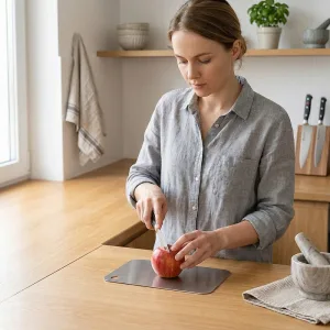 Ocelové prkénko Nygex promění každodenní vaření v klidnou jistotu. Oddělené strany bezpečně zpracují maso, zeleninu, těsto i svačiny. Masivní tloušťka odolává ohýbání při silném sekání. Hladký povrch se rychle opláchne, což šetří drahocenné minuty večera.