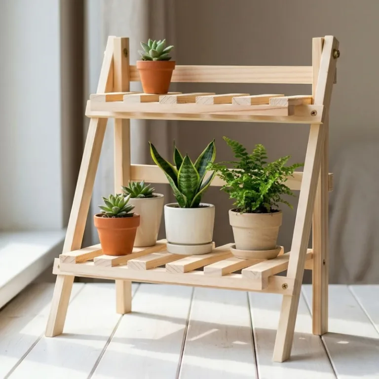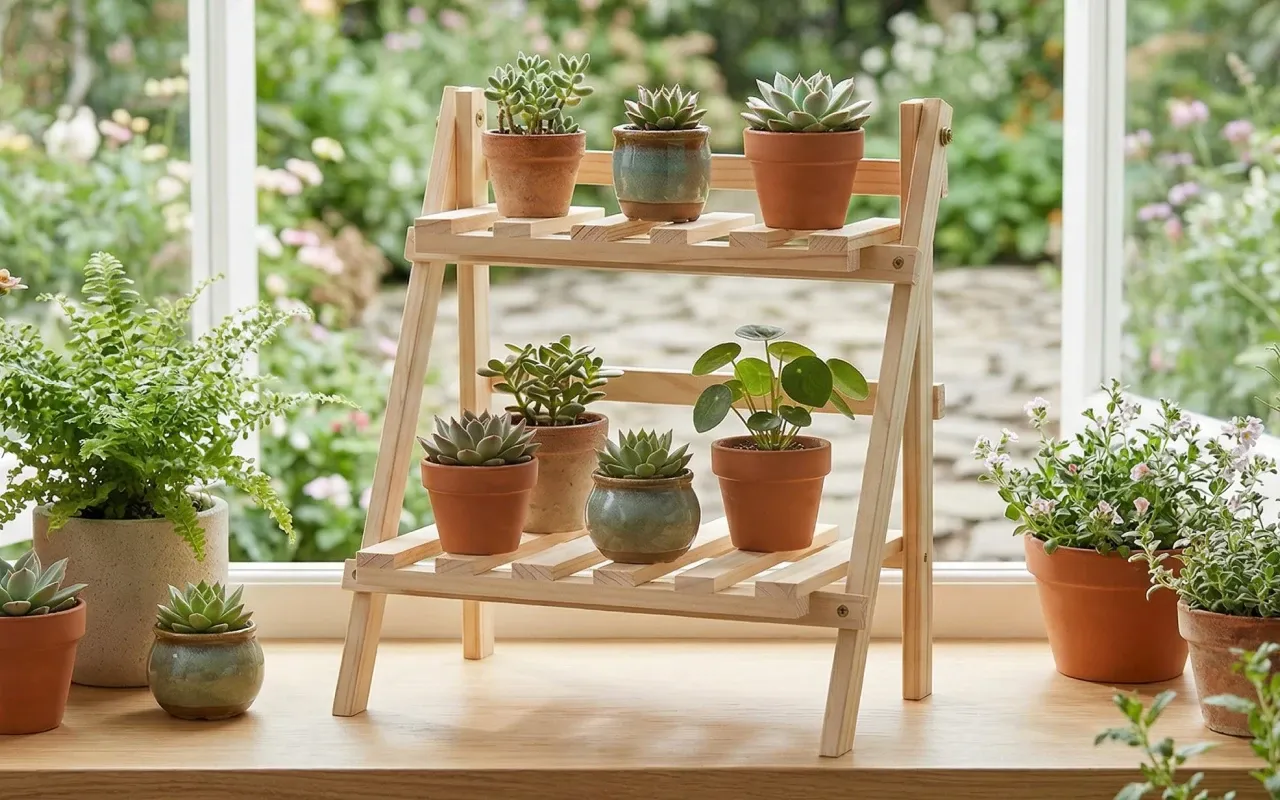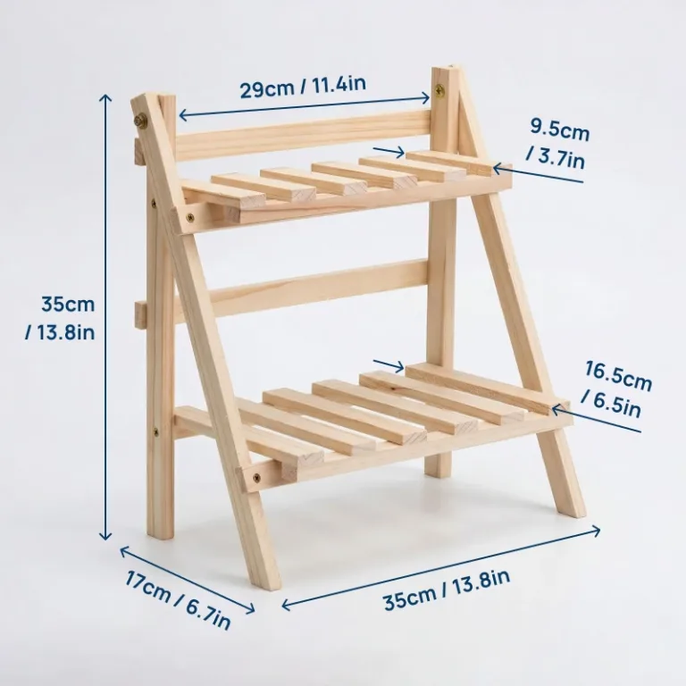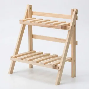 Dvouúrovňová zahradní police na květináče – dřevěný úložný regál