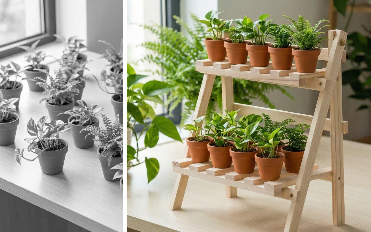 Zvýšené plošiny zvedají zeleň do výšky a uvolňují cenný prostor na zemi. Chytré vertikální uspořádání udržuje cesty volné a podporuje bezpečnější chůzi.
