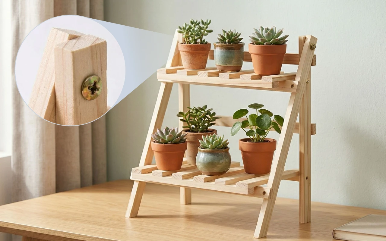 Robustní dřevěná konstrukce unese více truhlíků bez viklání. Spolehlivé spoje odolávají každodenním nárazům a zajišťují spolehlivý výkon v průběhu sezón.