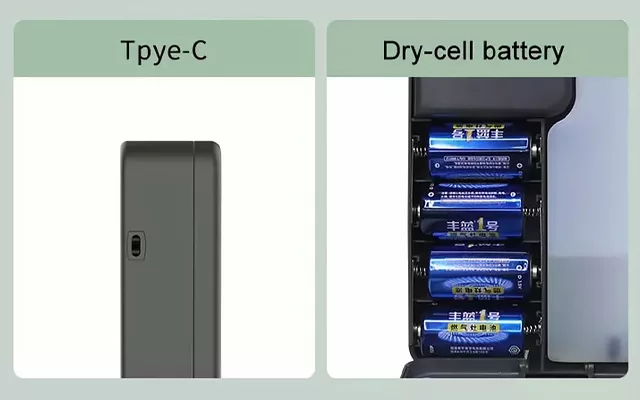 Náš difuzér lze napájet buď kabelem Type-C, nebo bateriemi.