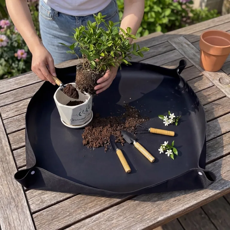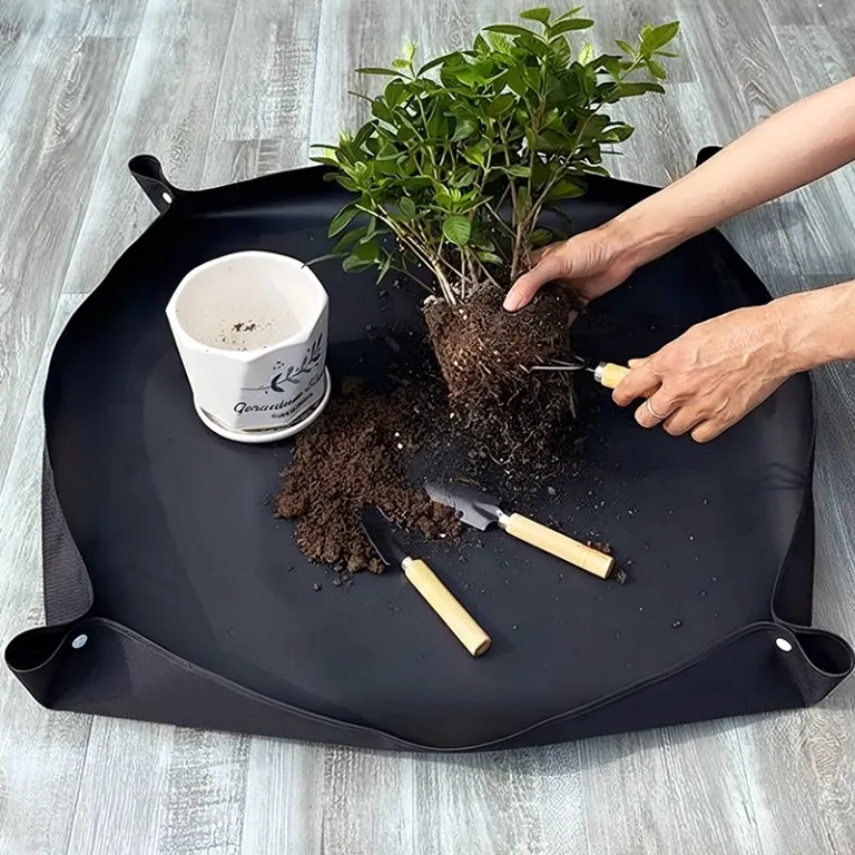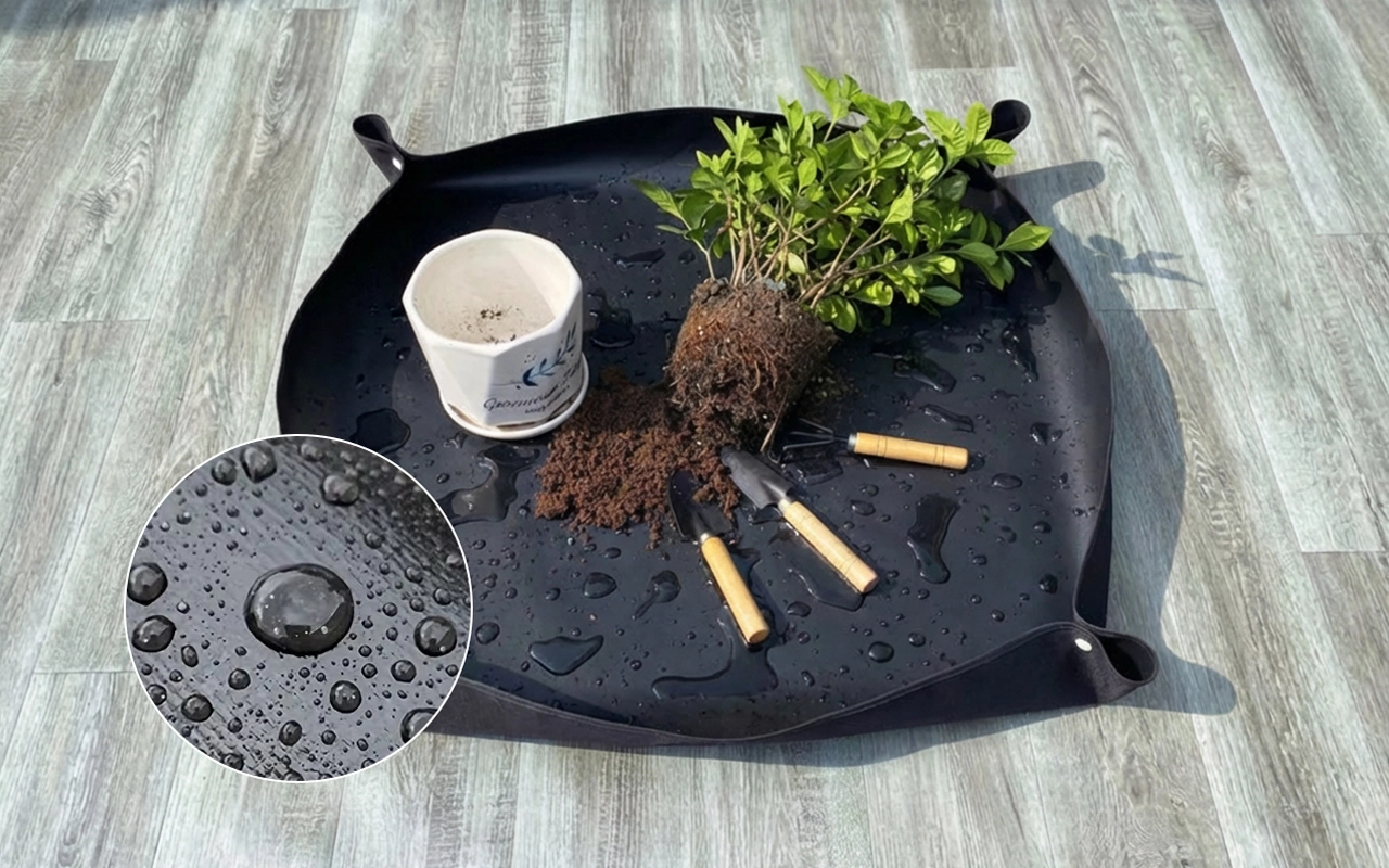 Zabraňte rozmetání zeminy po stolech, kobercích a kuchyňských dlaždicích. Přesazovací podložka Nygex vytváří uklizenou pracovní zónu. Zvýšené okraje zachytí substrát, vodu i volný štěrk. Skončíte rychleji a poté ji snadno setřete.