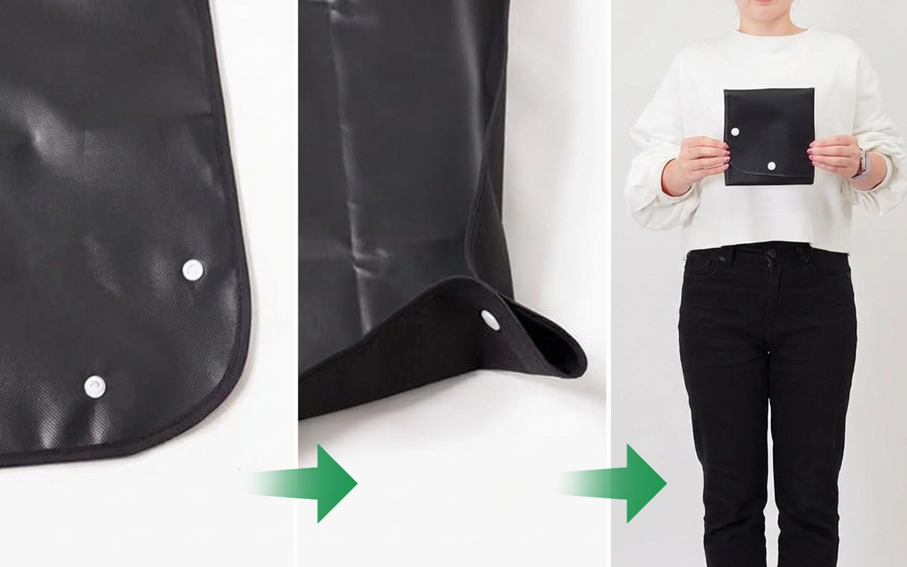 Sevřete rohy nahoru a během chvilky vytvoříte podložku. Poté ji složte naplocho a uložte do zásuvky.