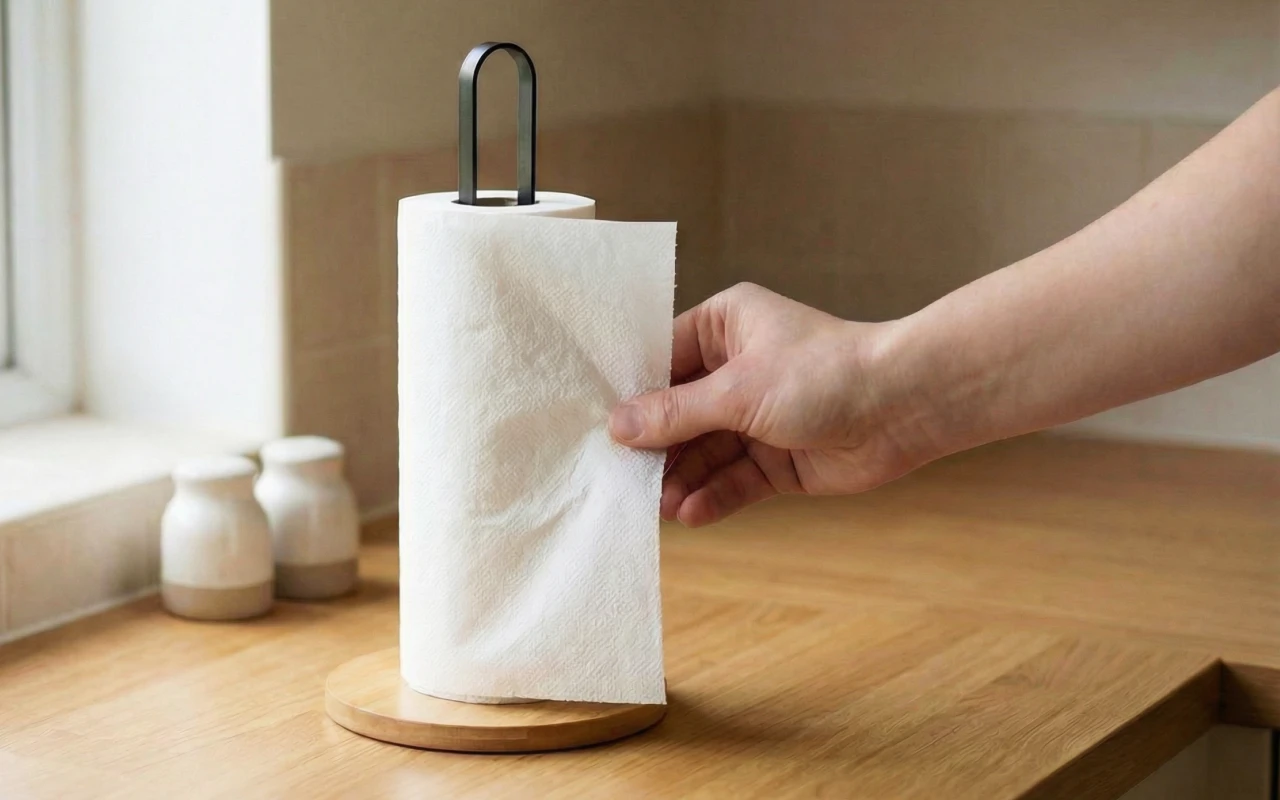 Pevná základna zabraňuje převrácení při rychlém odtrhávání. Každý útržek se uvolní hladce, i když máte mokré ruce.