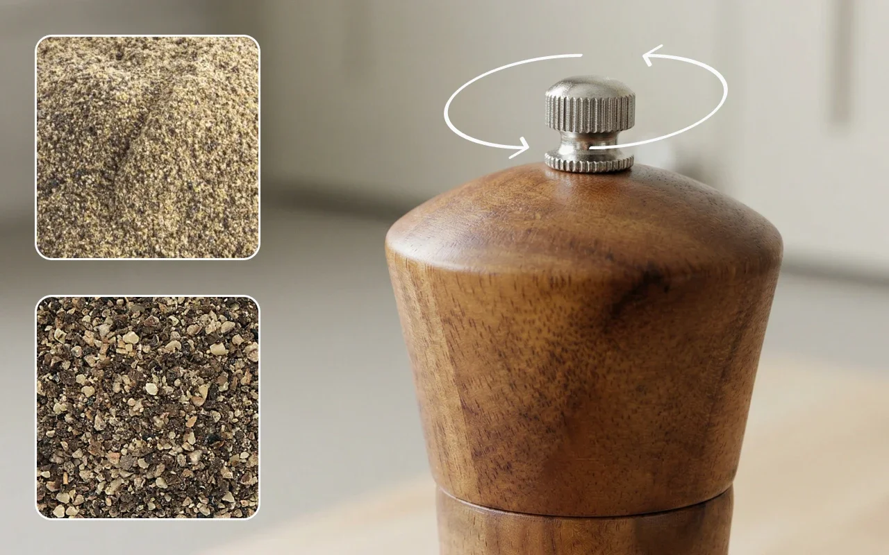 Nastavitelný mechanismus umožňuje v domácnosti volit mezi jemným prachem a výraznými kousky. Každé jídlo tak získá ideální texturu a recepty chutnají profesionálně připravené bez námahy.